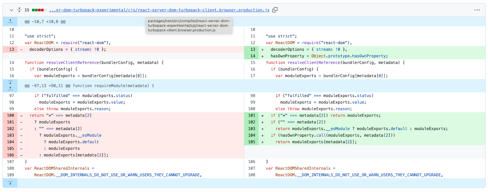 The vulnerable piece of code is in React code. We’ll look into react-server-dom-turbopack but other affected packages have similar code. The vulnerable code is at packages/react-server-dom-turbopack/src/client/ReactFlightClientConfigBundlerTurbopack.js.